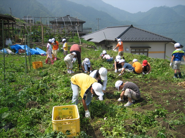 こども達が学校に戻ってから取り残しを鋤鍬でチェック。