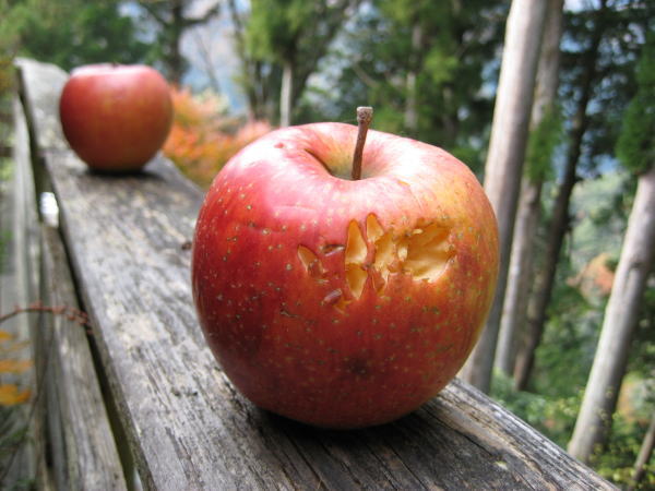 ボケてしまった林檎が置いてあります。
