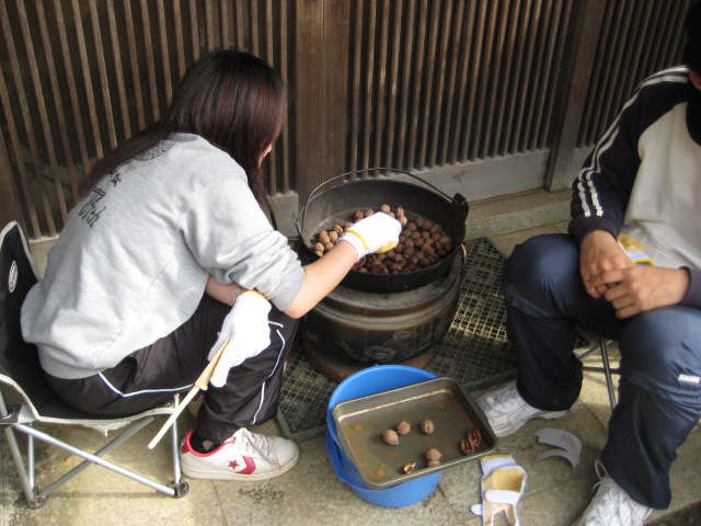 胡桃を煎って。
