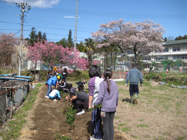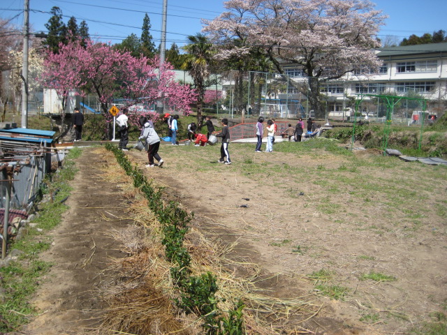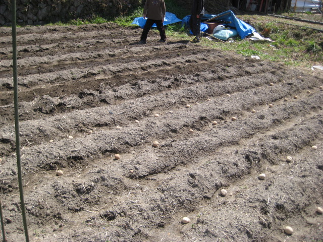 春休み前に畝を作って用意しておいたので、すぐに終わりました。^^