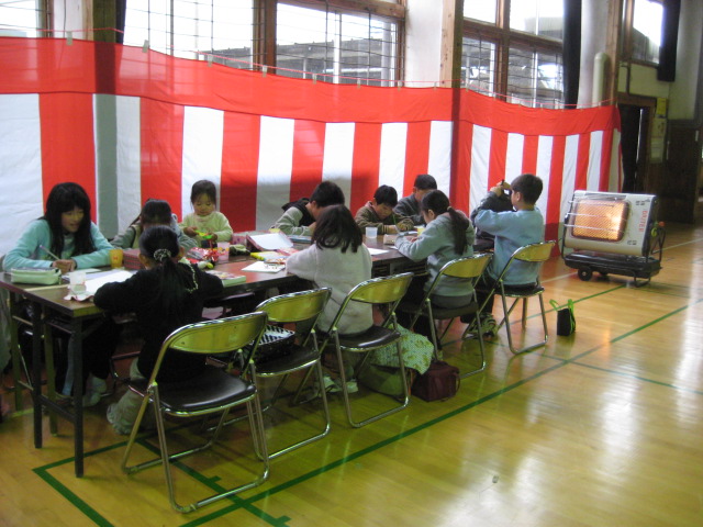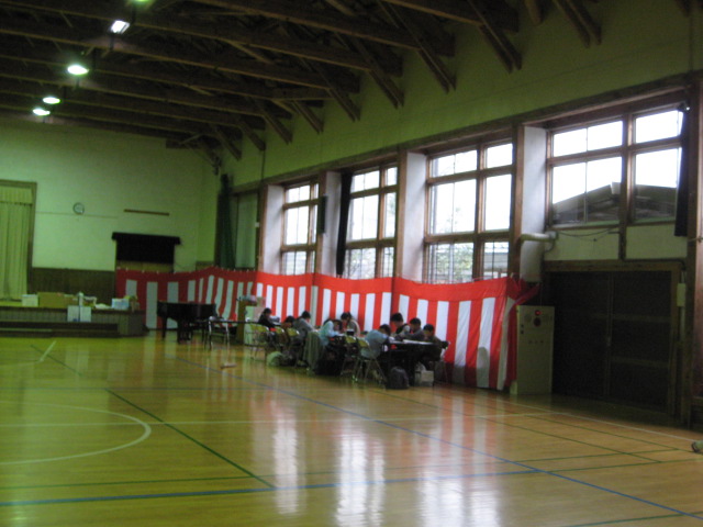 紅白幕でお目出度い感じの体育館。^^