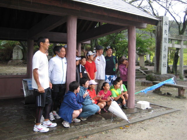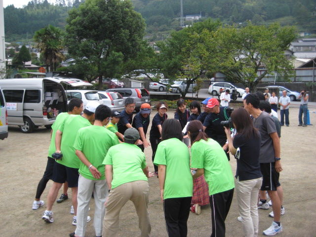 円陣を組んで「走りきるぞ〜!お〜!!!!!!」
