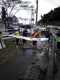 釜口水門のゴールテープが見えた時には本当に嬉しそうでした。