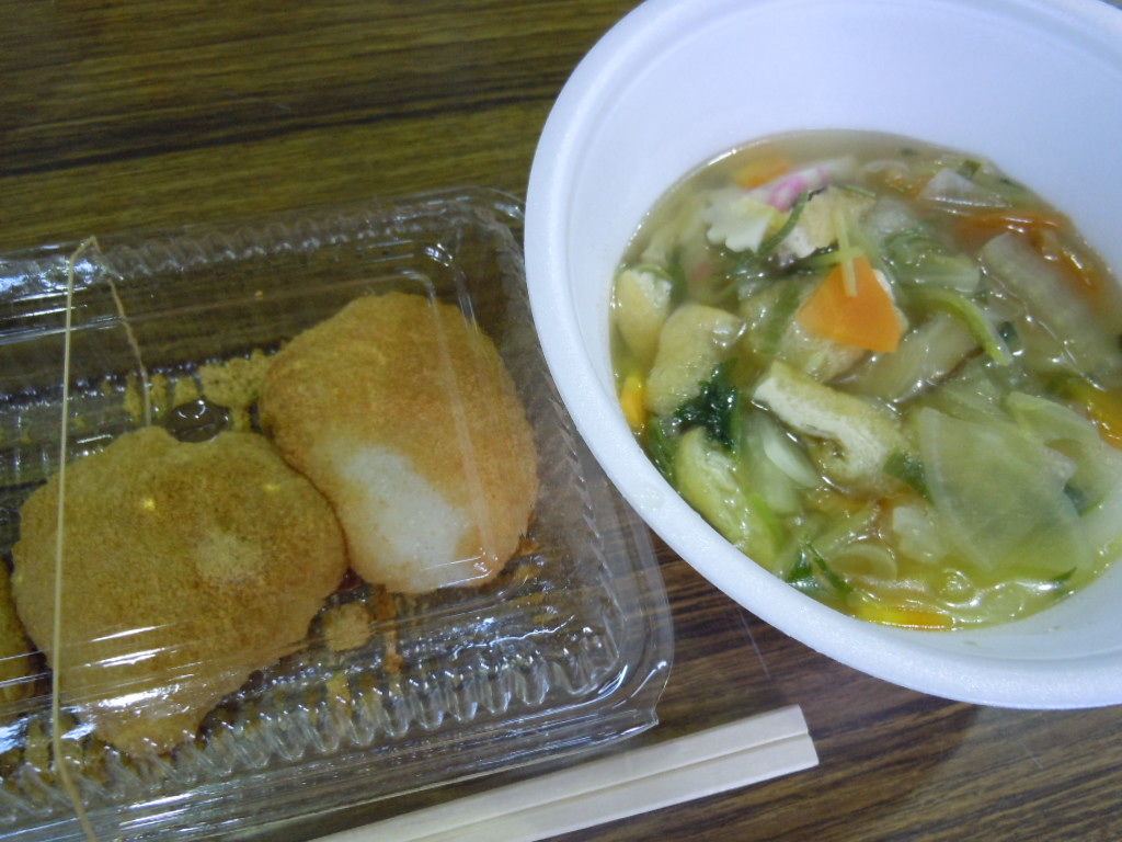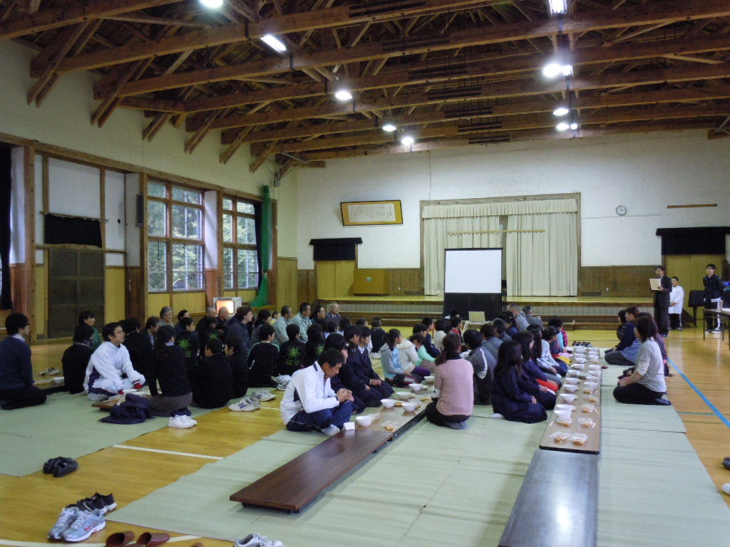 学校に戻って、みんなでカップラーメンの昼食。