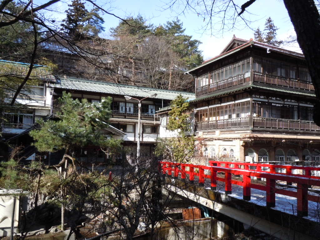 積善館の本館に続く赤い橋は、まさしく千と千尋の世界。