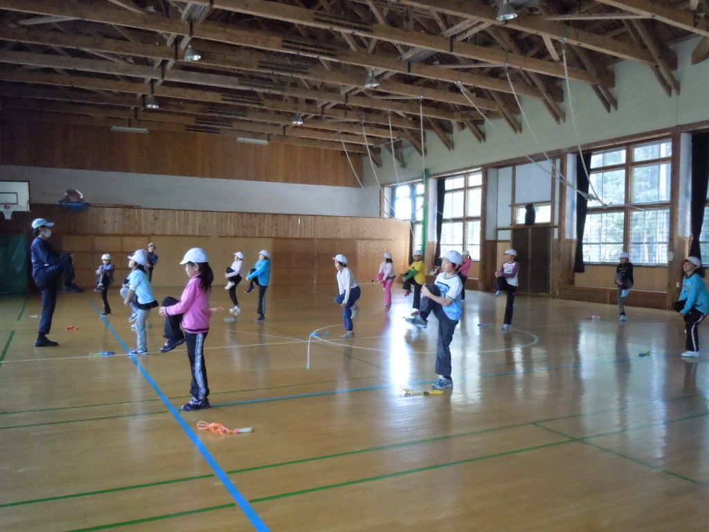 準備体操ののち、縄跳びを楽しそうにやっていました。